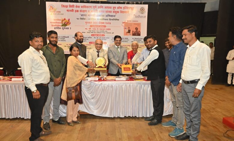 जिल्हा विधी सेवा प्राधिकरण पुणे,मानवी हक्क संरक्षण जागृती संस्था,जाधवर ग्रुप ऑफ इन्स्टिट्यूट या संस्थांच्या वतीने दि १० डिसेंबर रोजी “जागतिक मानवी हक्क” दिनानिमित्त मानवाधिकार पुरस्कार प्रदान सोहळा आयोजित करण्यात आला होता.