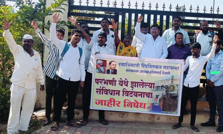 स्वाभिमानी रिपब्लिकन महासभेच्या वतीने परभणी येथील घटनेचा तीव्र निषेध.
