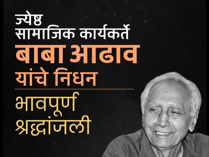 महान समाजपरिवर्तक, कष्टकऱ्यांचे कैवारी आणि मजूर चळवळीचे प्रणेते असलेले ज्येष्ठ समाजसेवक डॉ. बाबा आढाव यांचे आज दि. ८ डिसेंबर रोजी वयाच्या ९५ व्या वर्षी निधन झाले. त्यांच्या निधनाने महाराष्ट्राच्या आणि देशाच्या समाजकारण क्षेत्राचे मोठे नुकसान झाले असून, अन्यायाविरुद्ध लढणाऱ्या एका युगाचा अस्त झाला आहे.