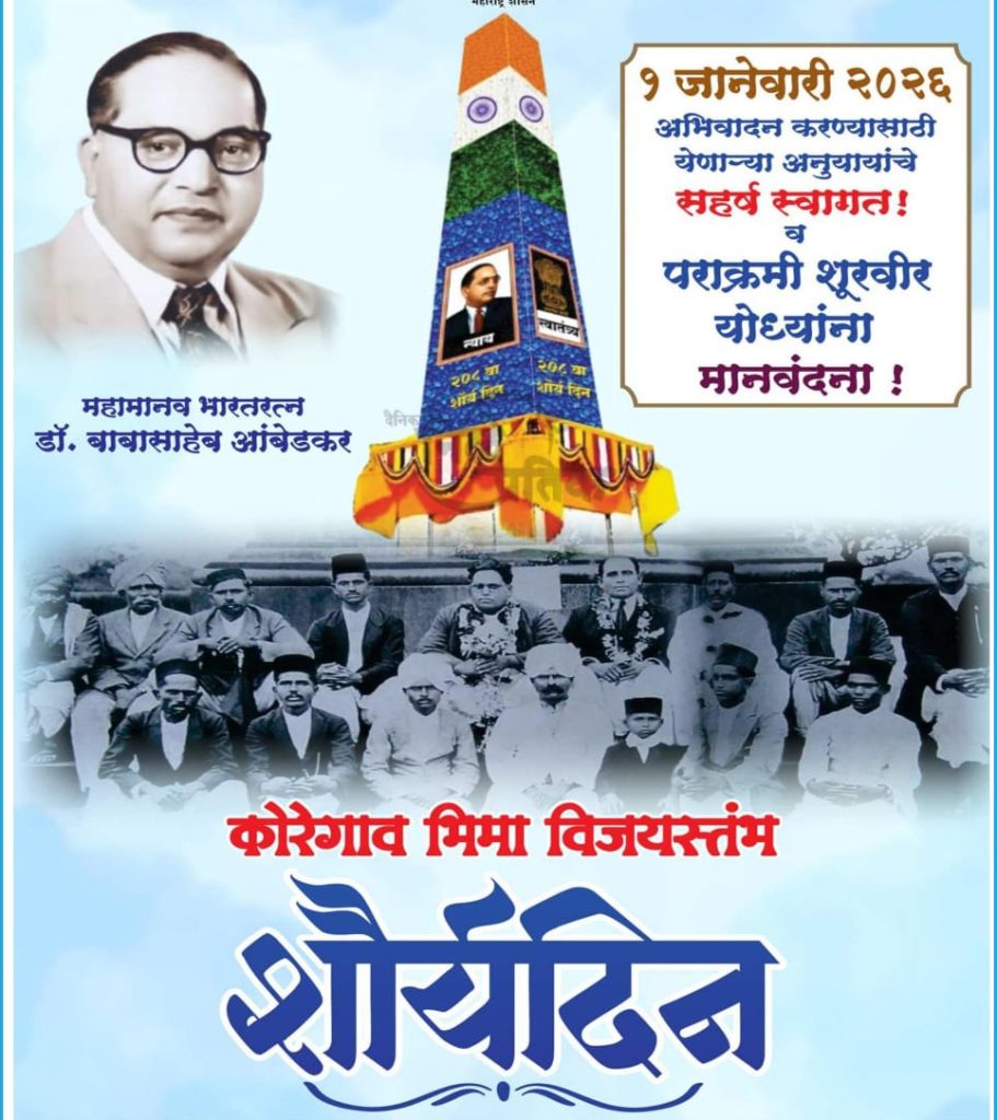 शौर्य हे जन्माने मिळत नाही, तर ते अन्यायाविरुद्ध उभे राहण्याच्या धैर्यातून जन्माला येते. भीमा-कोरेगावची ही ठिणगी प्रत्येक अन्यायाविरुद्धच्या लढ्यात मशाल बनून तेवत राहो, हीच आजच्या दिनी खरी अपेक्षा.