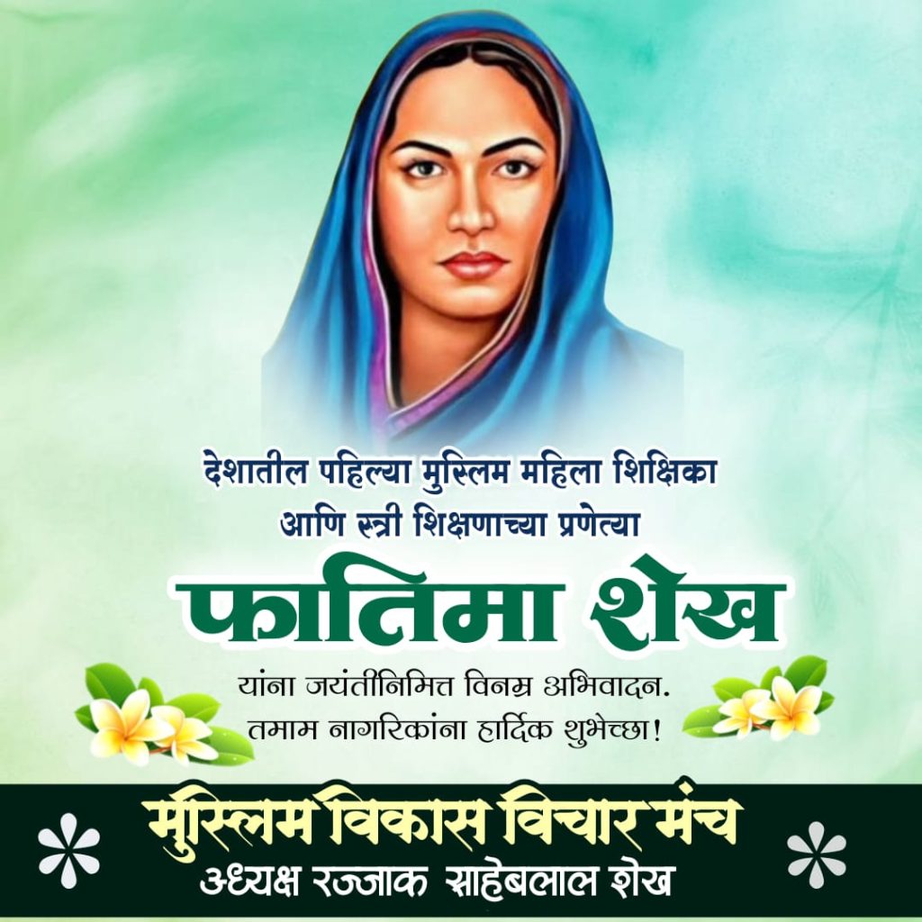 देशातील पहिल्या महिला मुस्लिम शिक्षिका, शिक्षणक्रांतीच्या सहप्रवर्तक क्रांतीकारक फातिमा शेख यांना साऊ ज्योती सामाजिक संस्था, महाराष्ट्र राज्य आणि अध्यक्ष सचिन हळदे यांच्या वतीने कोटी-कोटी सत्यशोधक अभिवादन!
